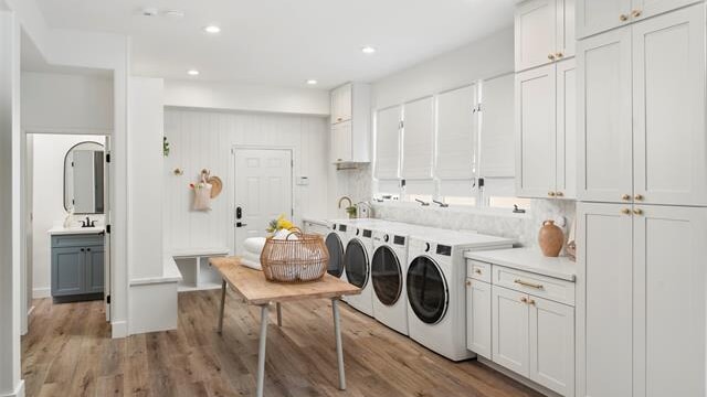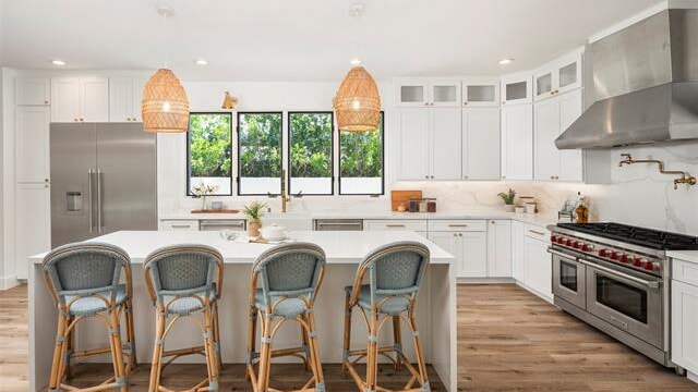 家族のシェフは、広々としたラップアラウンドカウンター、ウォーターディスペンサー付きのサーモダー冷蔵庫/冷凍庫、2台の食器洗い機、8口のウルフガスレンジ、ビルトインポットフィラー、カスタムレンジフードなどの最高級のプロ仕様の家電を備えたキッチンを気に入るでしょう。